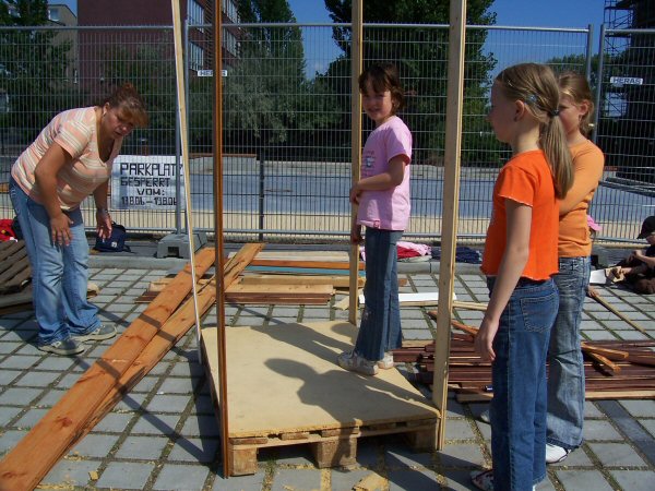 di kinder hangeln am sail unt lernen baim foierwerman.